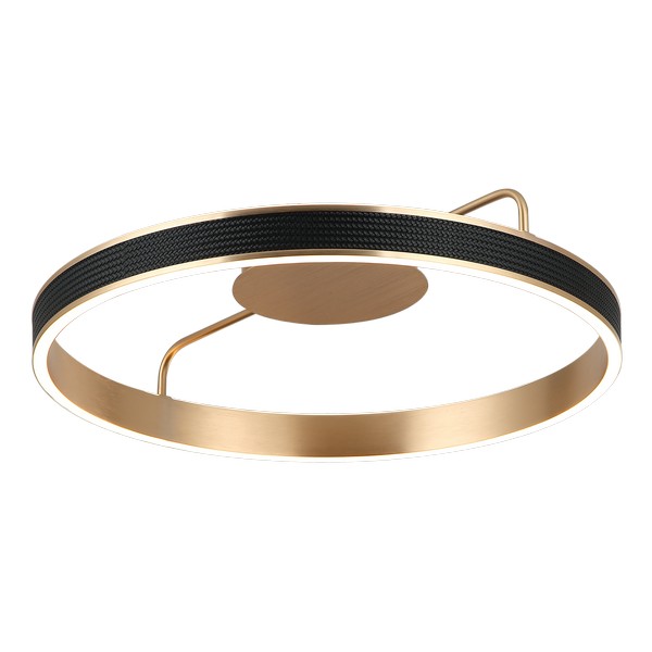 Plafonska LED lampa F2088-46C GD predstavlja spoj savremenog dizajna i luksuzne estetike, idealna za osvetljavanje i dekoraciju modernih enterijera. Izrađena je od kvalitetnog PVC materijala u elegantnoj zlatnoj boji, sa pažljivo uklopljenim crnim kožnim detaljima koji dodatno naglašavaju njen sofisticirani karakter. Lampa je opremljena integrisanim LED izvorom svetla tople bele boje (3000K) jačine 46W, koji pruža prijatno i ravnomerno osvetljenje. Poseduje mogućnost izbora tri nivoa osvetljenja – 100%, 50% i 25% putem standardnog prekidača u zavisnosti od ambijenta i trenutne potrebe. Dimenzije lampe su 586 x 125 mm, što je čini pogodnom za veće prostorije kao što su trpezarije, dnevne i spavaće sobe, gde dolazi do izražaja kako po funkcionalnosti, tako i po dizajnu.