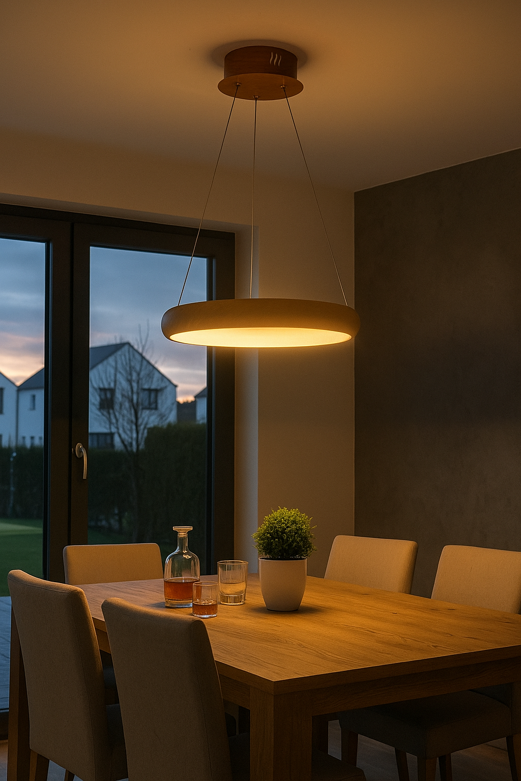 LED viseća lampa boja drveta donosi kombinaciju sofisticiranog dizajna i napredne LED tehnologije u vaš prostor. Ovaj model je idealan za dnevne sobe, trpezarije, kancelarije i druge prostore gde je poželjno moderno i toplo osvetljenje.