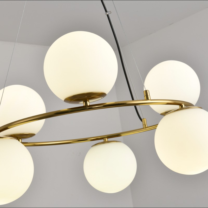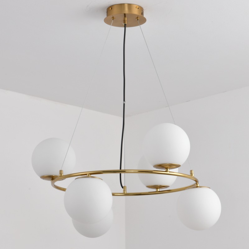 Luster PEGAZ 6R je savršen izbor za moderno osvetljenje vašeg enterijera. Sa 6 mat belih staklenih kugli i zlatnom konstrukcijom, ovaj model kombinuje luksuz i funkcionalnost.