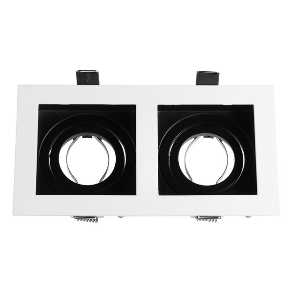 Jačina: Max. 50W Zemlja porekla: N. R. Kina Tip grla: 2xGu5,3 / GU10 Napon: 12V/220V Boja: Bela + Crna Materijal: Aluminijum Dimenzije: d: 100mm, Prečnik otvora: Ø90mm, š: 185mm, v: 30mm Stepen zaštite: IP20